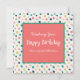 Custom Birthday Mod Orange Teal Dots White Script. Template is set up for you to personalize the text.
