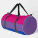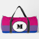 Duffle Bag with bisexuality pride flag with pink, purple and blue stripes, striped pattern design with customizable monogram template design