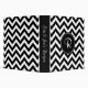 A customizable black and white monogram frame is on a black and white chevron pattern. The spine is also customizable.