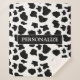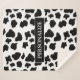 Black and white cow spots pattern fleece Sherpa Blanket. Funny animal print design for bed or sofa. Personalized text for family name or quote. Cool Christmas or Birthday gift idea for friends, family, sister, wife, girlfriend, mom etc. Soft cozy blankets for snuggling up. Add your own surname, monogram or quote. Available small, medium and big size. Great for rustic western cowboy interior.