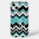 Custom Black Blue Turquoise Silver Zigzag Pattern Case-Mate iPhone Case