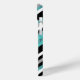 Contemporary white, black, and faux shiny aqua turquoise glitter chevron zig zag stripes pattern. With room to customize or personalize with a monogram or initial of your choice. Beautiful, modern, and cool cover for the trend-savvy and art-loving hip trendsetter, artsy motif lover who wants to protect their phone from dust and dirt, wear and tear. This design is available in Apple iPhone 6, 7, and 8 Plus, 10 or X, XR, XS, 11, 12, and 13 Mini, 14, 15 Plus, and Pro Max cellphone cases. Show off your style, look fashionable trendy, and feel stylish with a unique design on a mobile device accessory of your choice.