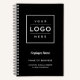Add a professional look to your workspace with a custom company branded spiral notebook featuring a large space for your business logo with modern custom text that can be personalized with the name of the employee or business owner, business name, location, slogan, website, or other info. Makes a great corporate gift. Note, the black background and white color scheme can be modified.