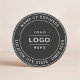 A distinguished sandstone coaster featuring a classic black background with your business name, custom logo, city and state location, and established year in a circular stamp layout. Perfect as a branded accessory for corporate offices, bars, cafes, restaurants, and promotional giveaways. All text and logo fields are fully customizable.