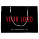 Sometimes you only need a few custom printed gift bags, especially if you're a small business, so here is a great way to just get what you need in the color and design you want. Easily personalize this large black gift bag with your own company logo and website address. You can easily change the black background to another custom color. Available in matte or glossy finish. The dimensions are 12.5 inch x 4 inch x 9 inch. No minimum order quantity and no setup fee.