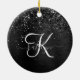 Custom Black Glitter Sparkle Monogram Ceramic Ornament