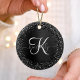 Custom Black Glitter Sparkle Monogram Ceramic Ornament