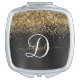Custom Black Glitter Sparkle Monogram Compact Mirr Mirror