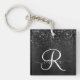 Easily personalize this trendy elegant keychain design featuring pretty black sparkling glitter on a black brushed metallic background.