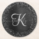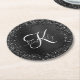 Custom Black Glitter Sparkle Monogram Round Paper Coaster