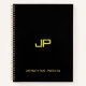 Custom Modern Black And Gold Elegant Monogram Template Professional Spiral Notebook.