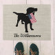 Awesome welcome doormat featuring a black lab holding an American flag and your name or custom text. Perfect for dog lovers!