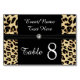 So far I have purchased my guest wedding favor labels and my bridesmaid thank you labels from Zazzle. I have be so impresssed with overall quality and the great low prices that I came back to look at table cards. When my order came to the house, once again I am was thrilled! Easy and so fun to customize! The paper quality was a postcard thickness which I was hoping for. Loved the classy Cheetah/Leopard design! I can't say enough about this card. A BIG thank you for making this available!! I loved that what I saw in the description image photo is what I got. Lettering and number very crisp (no blurriness) and bright! Highly recommend!!!