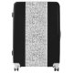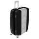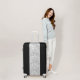 Make finding your bag at the airport easier with customizable luggage you can make unique. Hand-painted black curves swirl, meet, and diverge in this repeating design on a white stripe down the center of the luggage. The sides and back of the suitcase are black with white trim for the wheels, handle and side handle. You can customize the colors of several parts of the baggage and change its size in the sidebar.