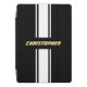 Custom Black White Racing Stripes Gold Monogrammed iPad Pro Cover