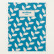 Custom Blue 70s Retro Leaf Pattern Monogram Planner