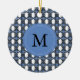 Custom Blue Abstract Scarab Pattern Monogram Ceramic Ornament