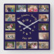 Create your own custom, personalized, faux gold and navy blue, elegant faux gold typography font script, family 14 photo collage keepsake square wall clock. To customize, simply type in your family name & year, and add fourteen of your favorite family / kids / baby / pets / couple / wedding photos. While you add / design, you'll be able to see a preview of your creation, throughout. Makes a great gift, for birthday, graduation, fathers day, mothers day, christmas, holidays, wedding, marriage anniversary, valentines day, and more, for your loved ones, mom, dad, husband, wife, bride, groom, grandpa, grandma, family and friends.