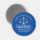 This custom blue law school graduation magnet features white typography for a class of 2024 graduate. Customize with your graduating year under the scales of justice for a great personalized lawyer or attorney keepsake gift.