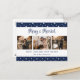 Custom blue photo wedding announcement holiday postcards featuring a starry blue background with 3 photos in the centre and a beautiful hand-lettered script title above. Easily personalize this blue holiday postcard with your images, message, and your family name. You can also personalize the font and change the color of the text and the background as well.