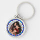 Custom Merry and Festive Blue Christmas Photo Picture Frame Round Gift Keychain for Best Friends. A colorful and bright circular ornament for your winter and icy blue themed decorations. The frame design is a jolly geometrical abstraction pattern take on traditional color block festive designs. In winter colors of ice blue and snow white, with hints of dark reddish brown. Personalize it by replacing the photo with your own, for an early gift for family and friends, to celebrate Christmas. Cherish your Yuletide memories of a Winter Wonderland. A great way to keep your keys organized the for best friends and brothers and sisters, or couples. A budget friendly keyring keepsake for celebrations.