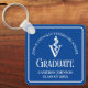 This custom blue veterinary graduation keychain features white typography for a class of 2024 graduate. Customize with your graduating year under the medical caduceus for a great personalized veterinarian gift.