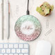 Easily personalize this beautiful sparkly pink and green faux glitter wireless charger with your custom handwritten script monogram and name.