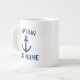 Personalized boat captain name and anchor extra large jumbo mug. Nautical accessories with navy blue anchor and custom name or monogram initial letters. Maritime Fathers Day, Birthday gift idea for sailor men. Make your own present for skipper dad, father, grandpa, uncle, son, boyfriend, friend, stepfather, stepdad, husband, wedding groom, boss, friend, buddy, employe, grandfather, veteran etc. Vintage masculine typography with ship anchor design. Biggest customizable coffee cup with sailing / boating theme. Also nice for cruise travelers or sailboat crew members. Make your own super big XL drinkware. Very big size! Largest 20 oz mugs. Double sided print.