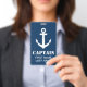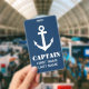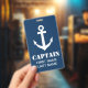 Personalized name badge for boat captain, sailors, first mate, crew members, sailing staff, personnel, groups etc. Custom maritime supplies and accessories with nautical anchor logo. Add your own text, logo, surname, job title description, function, etc. to this template. Handy for yacht employee, deck help, co worker, boss, volunteers, helpers, assistant, guests, crew, cruise ship worker etc. Also useful for nautical wedding party events, business conferences etc. Suitable for men and women. Available in different sizes, small and large. Custom color background i.e. navy blue. Change the quantity to get the cheapest price per badge.