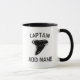 Custom boat captain name shark tooth coffee mug. Personalized sailor cup for tea, coffee and other drinks. Nautical accessories with black and white colors. Add your own name or monogram initial letters. Maritime Birthday or Father's Day gift idea for men who love sailing / boating / yachting / fishing on the lake or ocean sea. Make your own for skipper dad, father, grandpa, grandfather, fisher, uncle, husband, son, friend, stepfather, stepdad, friend, co worker, boss, employee etc. Vintage typography and fossil logo design. Customizable 11oz drinkware for home or office. Also nice as present for cruise ship travellers, divers, beach scavenger hunt, and sailboat crew members. Double sided print.