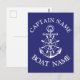 Custom boat captain navy nautical sailor Classic Postcart. Customizable Postcard for navy sailor captain.
