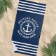 Towel with your custom boat name and anchor with circular rope border and the text "Welcome aboard" or other custom text