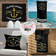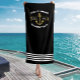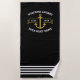 Make a splash this summer with this personalized nautical beach towel! Crafted from super-soft, absorbent microfiber, this large beach towel features a sophisticated black and gold background adorned with a classic anchor design, "Welcome Aboard," your boat's name, and the establishment year.