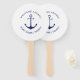 Custom Boat name or Family name, Welcome Aboard, nautical navy blue anchor and text and white wedding Hand Fans