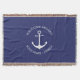 Custom Boat name or Family name, Welcome Aboard, nautical white anchor. white letters navy blue Throw Blanket.