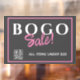 Modern charcoal black (dark grey) window cling with white and pink text that's perfect for retail store, boutique, salons and shop windows or doors that can be used for promotions year round. Completely customizable text boxes and customizable QR code allow you to add your own personal touch