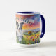 Indulge in the perfect coffee experience with our Combo Mug, featuring a beautifully illustrated Border Collie with light-colored fur, basking in the sunshine of a flowery farm field. Customize the "Border Collie love" text to convey your heartfelt message, adding a personal touch to every sip.