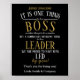 Celebrate an inspiring leader with this elegant personalised boss poster, featuring a striking black background with white and gold text. The meaningful quote reads: “It’s one thing to be a boss, another thing to be a mentor, but a completely different thing to be a leader. We are proud to have been led by you!” (can be edited to “to be led by you” if they are not leaving).