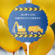Cool custom construction excavator happy birthday ballon for a boy who loves yellow construction vehicles in black and yellow. Fun blue vehicle party decor for kids who love cars and dump trucks. Customize with your kid's name under the black and yellow caution tape with a personalized happy birthday message including their name and age.