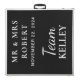 An enjoyable personalized beer pong table, available in any color of your choice, perfect for your wedding celebrations and the exciting journey of newlywed life. This table showcases cup arrangements, displaying your names and wedding date, along with designated "Team Bride" and "Team Groom" sides, all presented in elegant white script and contemporary typography.