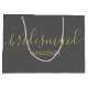 Custom Bridesmaid Name Girly Chic Gold Script Gray Large Gift Bag