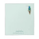 Pretty custom notepad featuring a broad-billed hummingbird on a light turquoise background. The font style, font size and font color can be changed by clicking on "customize further".