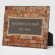 Add your landmark, business, or memorial details to this tabletop plaque that looks like a replicate of a bronze memorial plaque on a brick wall.