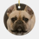 Custom beige Bulldog dog photo with bone and typography Ornament. Text, only on the front side, ready to be personalized. Ideal for everyone!