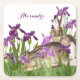 Custom Bunny Rabbit Purple Iris Floral Square Paper Coaster (