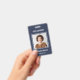 Showcase your team with a professional and timeless vertical badge design. The sophisticated deep navy background provides a polished look that elegantly frames an employee's photo and essential details. This minimalist and clean layout creates a professional impression, perfect for maintaining a unified and recognizable corporate identity.