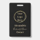 This is a modern, minimalist, black and gold custom business ID name badge design. This simple, stylish design is in classic black and gold. The template is set up for you to simply add your employee's name and job title, as well as your business name and logo. Ideal for a professional, minimal, and elegant custom branded name tag. On this design the same information is repeated on the front and back. To personalize, simply add your name, job title, logo and business name, by using the personalize this text box. To change the color or font, check out the design editing tool. For help with personalization, matching products, or for a custom design, contact me via zazzle chat or email: ursuladawnmoon@gmail.com