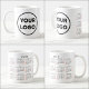Classic corporate mug features a 2026 calendar with black weekdays and red weekend dates on one side and your company logo on the other. Replace the sample business logo with your own in the sidebar. Your logo can be any shape and in color or black and white. A great gift for your customers and employees.
