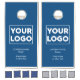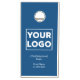 Custom branded cornhole set features your company logo and business name, slogan, corporate event name, website, or other text on a blue background. Replace the sample logo and text with your own in the sidebar. White or light colored logos will work best with this design. Your logo can be any shape. If you want the background color to show through your logo, upload a version of your logo with a transparent background.