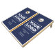 Custom branded cornhole set features your company logo and business name, slogan, corporate event name, website, or other text on a navy blue background. Replace the sample logo and text with your own in the sidebar. White or light colored logos will work best with this design. Your logo can be any shape. If you want the background color to show through your logo, upload a version of your logo with a transparent background.
